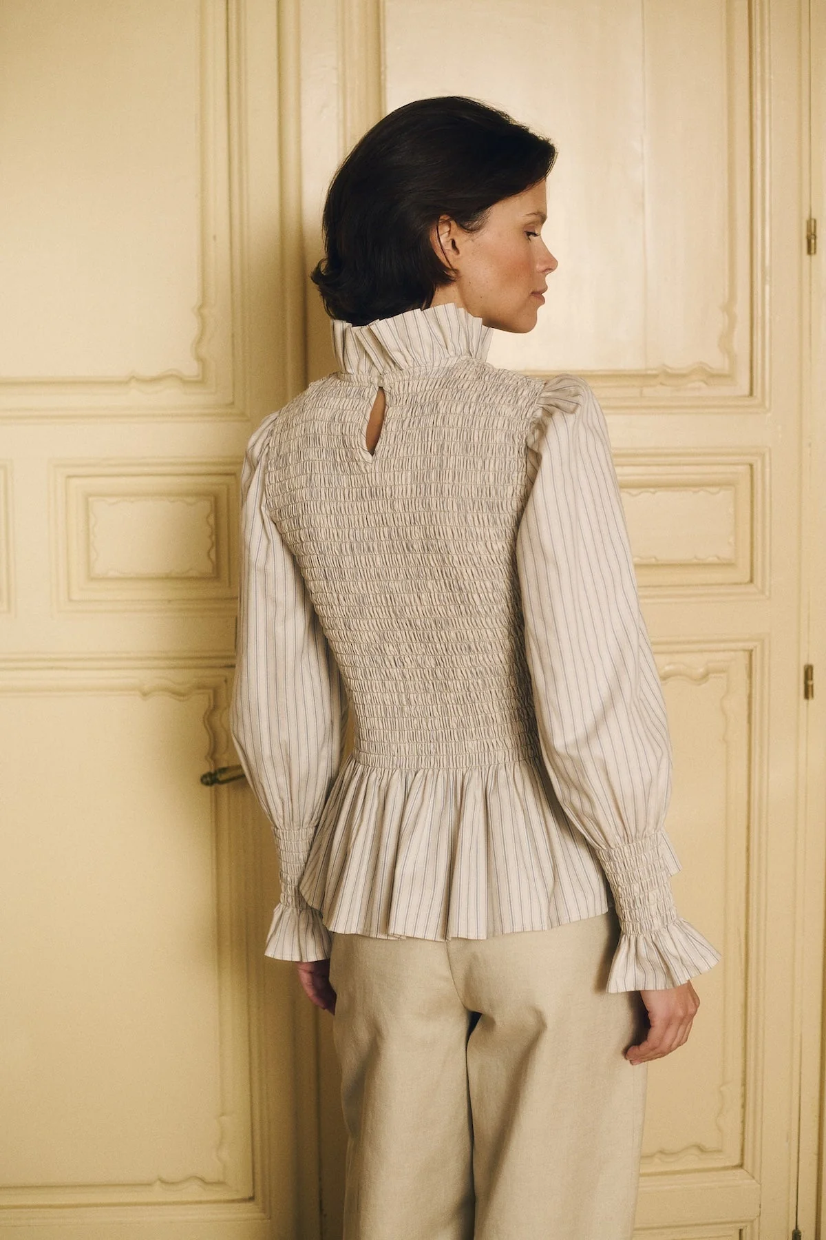 The Aleria Shirt, with smocked details, is our signature piece for an effortlessly feminine silhouette