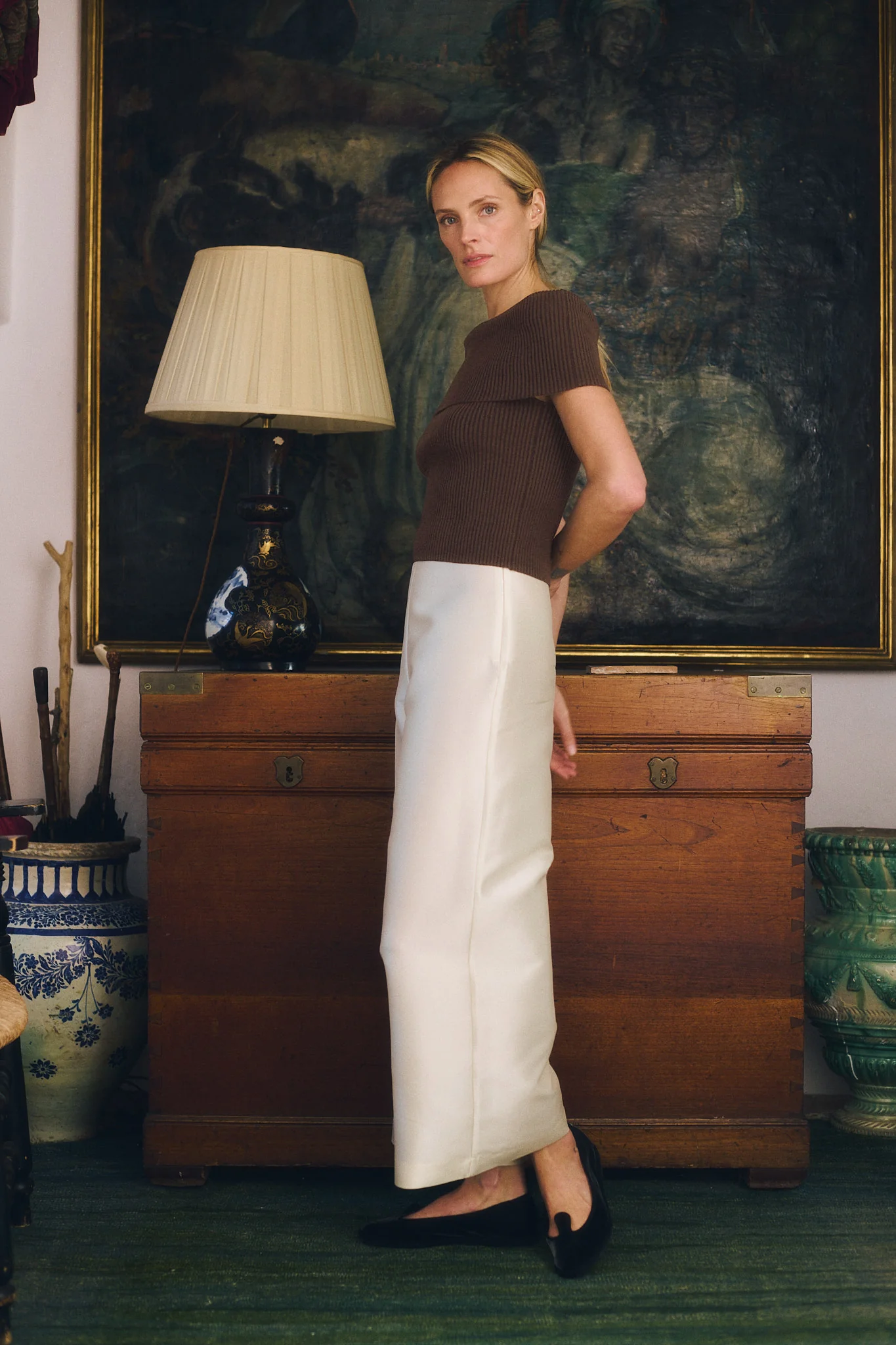 The Mateo Top enhances your neckline with its feminine off-the-shoulder design and a fitted ribbed silhouette